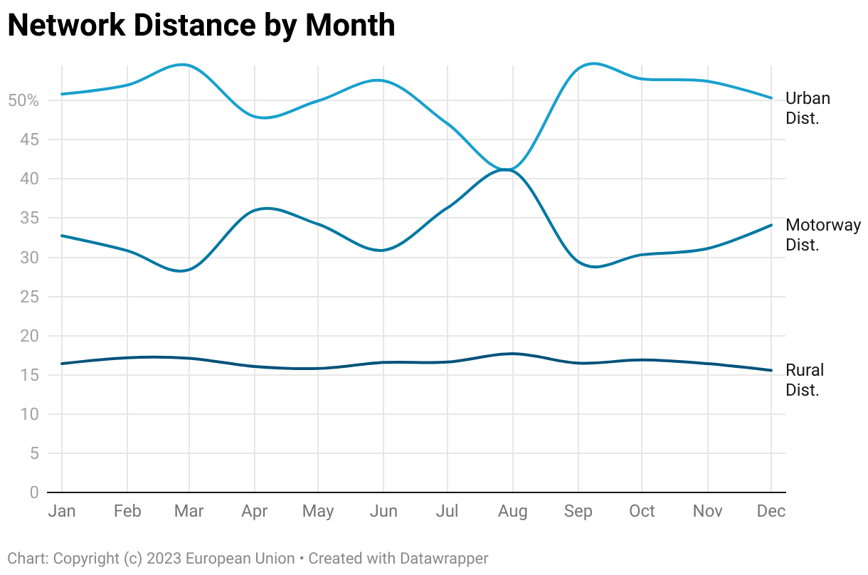 How is fuel and energy consumption calculated: According to recent EU regulations, OBFCM vehicles need to monitor and store relevant quantities for the in-use performance assessment, such as total driven distance, total fuel consumed and total energy recharged from the electrical grid (the latter only for plug-in hybrid electric vehicles). These are cumulative values that preserve the whole vehicle lifetime. From the latest cumulative values, we can calculate the average lifetime fuel/energy consumption, anyhow we can also use their increments to derive average metrics over shorter time windows, for example over a single month or trip.